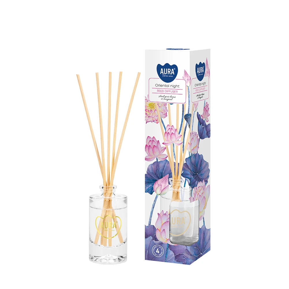 Dyfuzor Orientalna Noc emanuje orzeźwiającym, egzotycznym aromatem inspirowanym wschodnimi nutami, który tworzy przyjemną, relaksującą atmosferę w każdym wnętrzu. Opoń 45 ml, idealny do mniejszych pomieszczeń, takich jak łazienki, sypialnie czy biurka, zapewnia unikalny aromat przez aż 4 tygodnie. Zestaw zawiera 5 patyczków ratanowych do regulacji intensywności zapachu, który można łatwo dostosować do własnych upodobań.