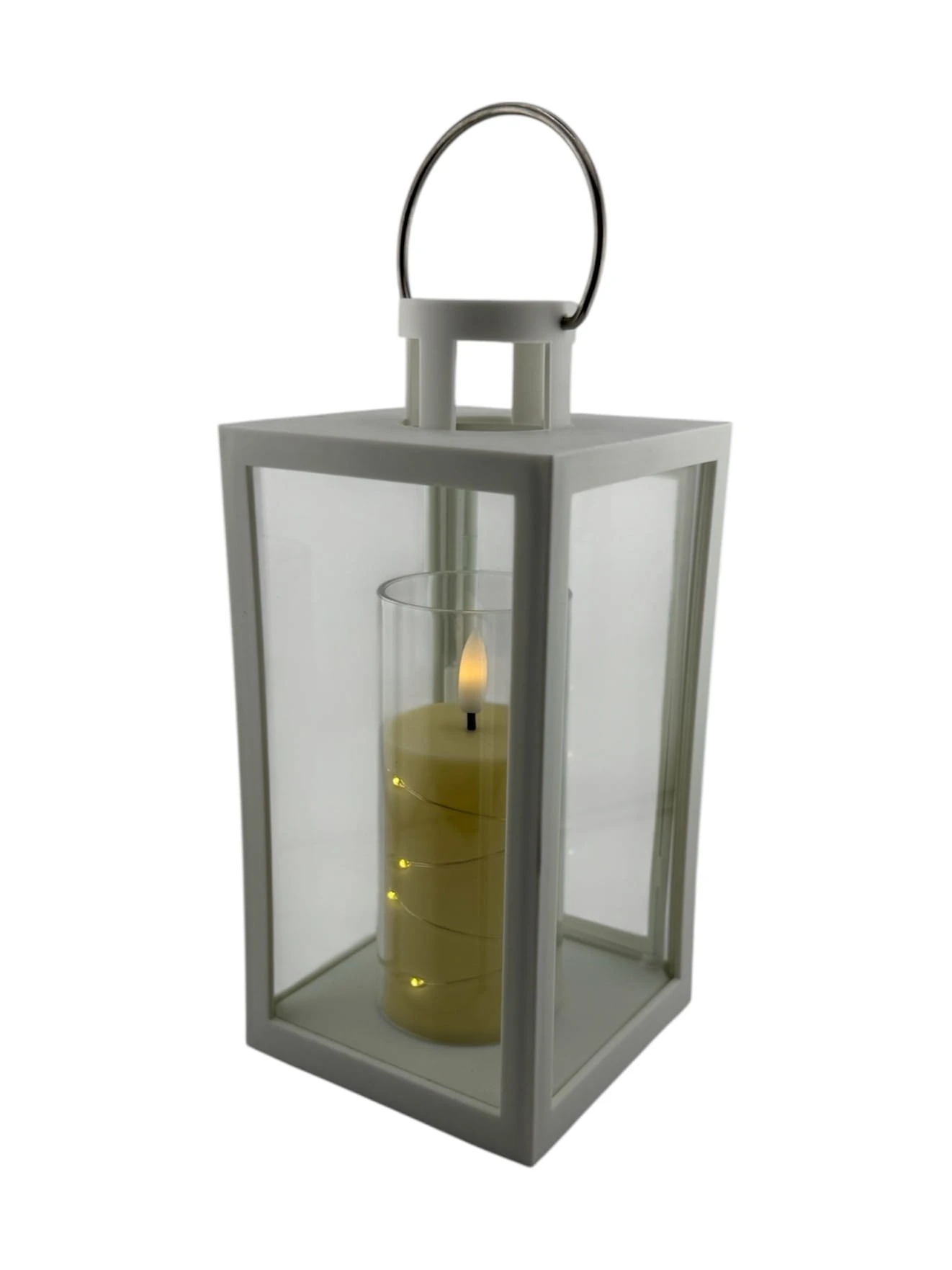 ⭐ Latarenka dekoracyjna CORTINA 21 cm – Biała, prostokątna ⭐