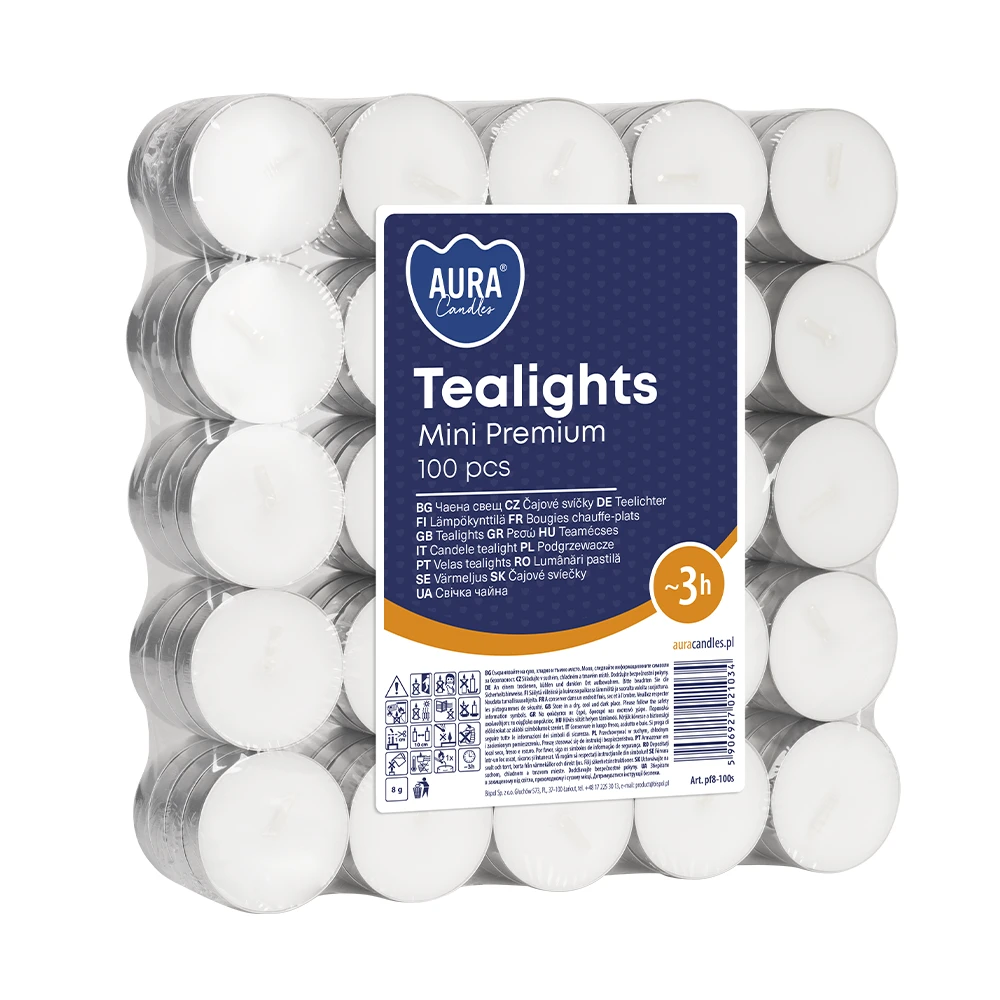 Klasyczne, bezzapachowe podgrzewacze dekoracyjne marki AURA o czasie palenia około 3 godzin to praktyczny i estetyczny dodatek do każdego wnętrza. Wysokość 1,2 cm oraz średnica 3,9 cm sprawiają, że są uniwersalne i łatwe do wkomponowania w różne aranżacje, od salonów po restauracje i SPA. Pakowane po 100 sztuk, idealne do tworzenia ciepłej atmosfery na co dzień i podczas wyjątkowych okazji, dodając wnętrzom wyjątkowego uroku i relaksującej energii. Naturalny płomień i brak zapachów gwarantują komfort i przytulność każdej przestrzeni.