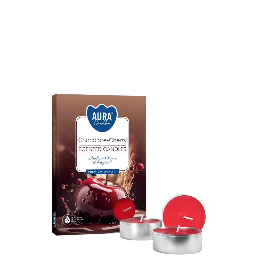 Rozkoszuj się subtelnym, słodkim zapachem podgrzewaczy Czekolada - Wiśnia od AURA. W opakowaniu znajdziesz 6 małych świec zapachowych, które wypełniają wnętrze aromatem owoców, delikatnej wanilii oraz nutami miodu, migdałów i żywicy. Idealne do tworzenia przytulnej atmosfery podczas romantycznych wieczorów, relaksu czy kolacji, dodając ciepła i uroku każdemu pomieszczeniu. Średnica 3,9 cm, wysokość 1,5 cm zapewniają nie tylko estetykę, ale też długi czas emisji aromatu.