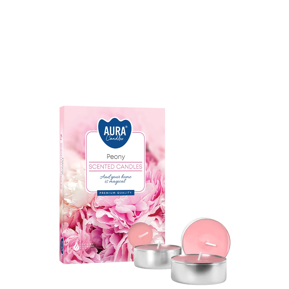 Małe podgrzewacze zapachowe Piwonia to elegancki sposób na odświeżenie wnętrza i stworzenie relaksującej atmosfery. Wyjątkowy aromat piwonii, kojarzony z delikatnością i świeżością, umila wieczory po długim dniu. W eleganckim różowym opakowaniu znajduje się 6 tealights, które palą się przez około 4 godziny. Ich subtelny zapach doda wnętrzu luksusowego charakteru oraz sprawi, że idealnie sprawdzą się jako prezent dla bliskiej osoby lub dla siebie, wnosząc odrobinę elegancji i relaksu do codzienności.