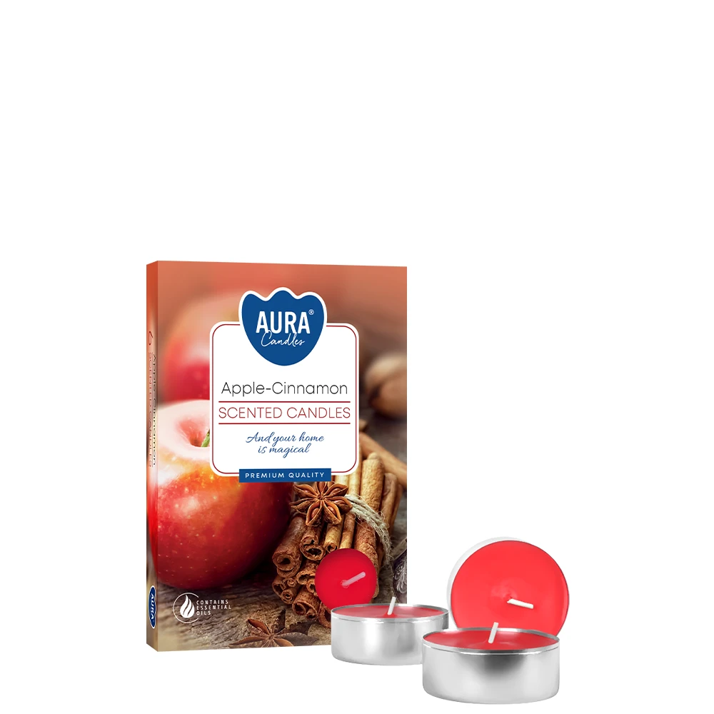 Podkreśl magię świąt dzięki naszym aromatycznym podgrzewaczom o zapachu jabłka i cynamonu. W zestawie znajduje się 6 sztuk ekonomicznych małych świeczek, które rozświetlą dom ciepłym, przyjemnym aromatem przypominającym sezonową atmosferę. Po zapaleniu, przez około 4 godziny, w powietrzu unosi się świeży owocowo-drewniany zapach z nutami jabłka, drewna różanego, korzennych przypraw i cynamonu. Idealne do tworzenia przytulnego nastroju i weselnego klimatu świąt.