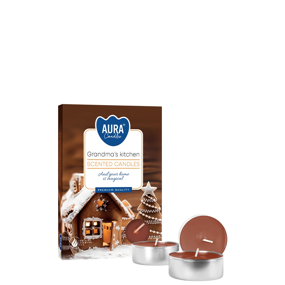 Podgrzewacze Kuchnia Babci otulają Twój dom ciepłym aromatem imbiru, cynamonu, wanilii i słodkiej pomarańczy, przenosząc wspomnienia rodzinnych spotkań i domowego gotowania. Ta aromatyczna kompozycja wprowadza przytulność i energię do wnętrza, idealna na chłodne dni. Z opakowaniem 6 sztuk, each candle has a diameter of 3,9 cm, height of 1,5 cm i zapewnia aż 4 godziny relaksującego palenia. Podaruj sobie magiczną atmosferę z podgrzewaczami Kuchnia Babci i ciesz się ciepłem domowych wspomnień.