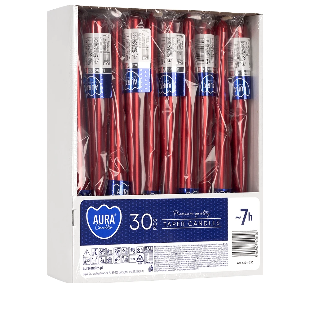 ŚWIECA STOŁOWA STOŻKOWA S30-1-230 A-30 CZERWONY METALIK / 1