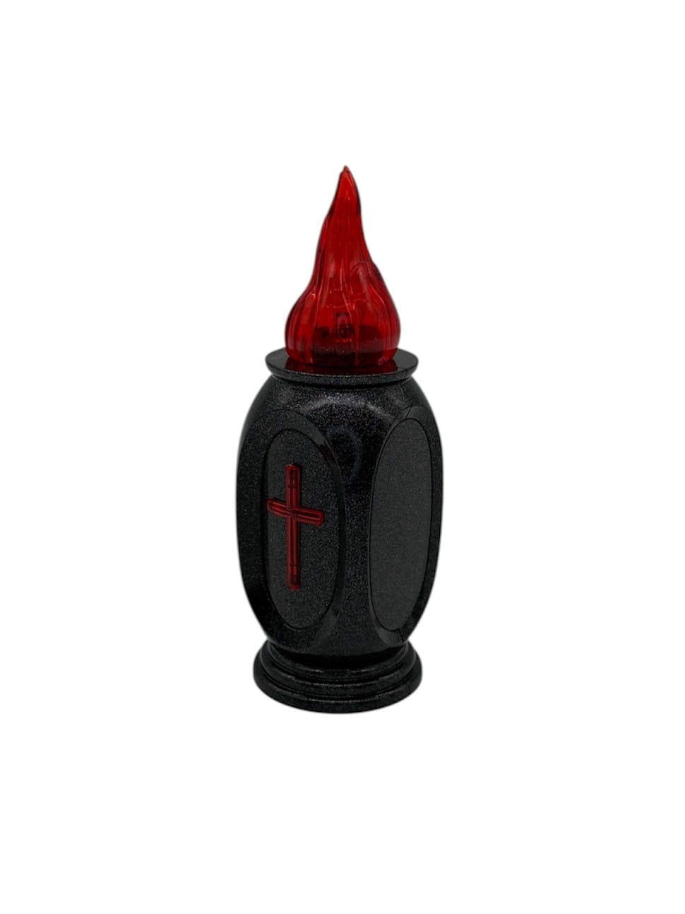 ⭐ Znicz elektryczny LED CORTINA 16 cm – Czerwony Płomień + Krzyż ⭐